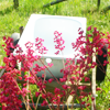 Description: a bathtub plonked in the middle of a meadow, surrounded by red flowers