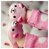 Description: a little girl's feet clad in pink bunny slippers