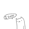 Description: Illustration of a cat with a speech bubble saying 'I suck'
