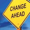 Description: yellow road sign against blue sky. sign reads: change ahead.