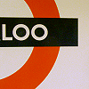 Description: cropped image of waterloo tube station sign, reading only 'loo'